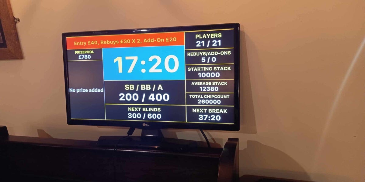In the 2nd event it was 21 players, £1400 prizepool 5 places paid and after making a deal the winner took £500.